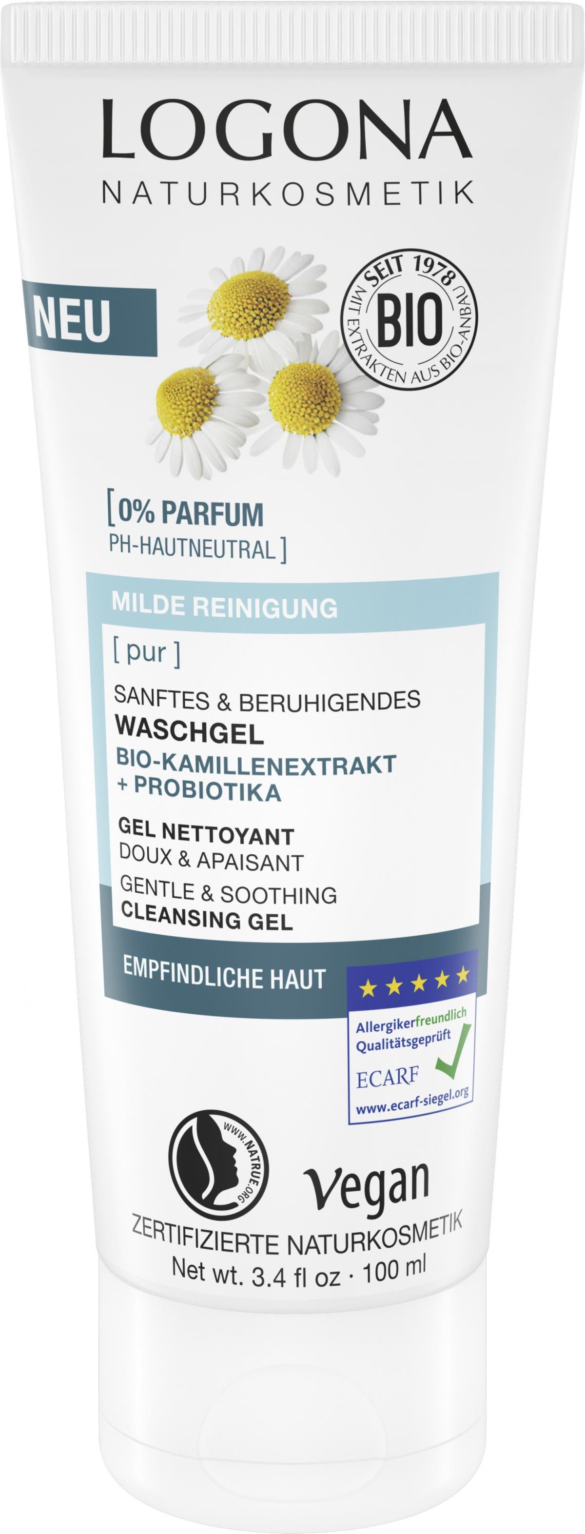 Das LOGONA SANFTE & BERUHIGENDE WASCHGEL natürlichen Ursprungs reinigt empfindliche Haut und ist dabei besonders mild und verträglich. Die pH-hautneutrale Formel mit Bio-Kamillenextrakt und natürlichen Probiotika schont die Hautschutzbarriere und mildert Irritationen wie Spannungsgefühle, Rötungen und Kribbeln: natürlich pur, ohne Duft- und Farbstoffe. Dermatologisch getestet.