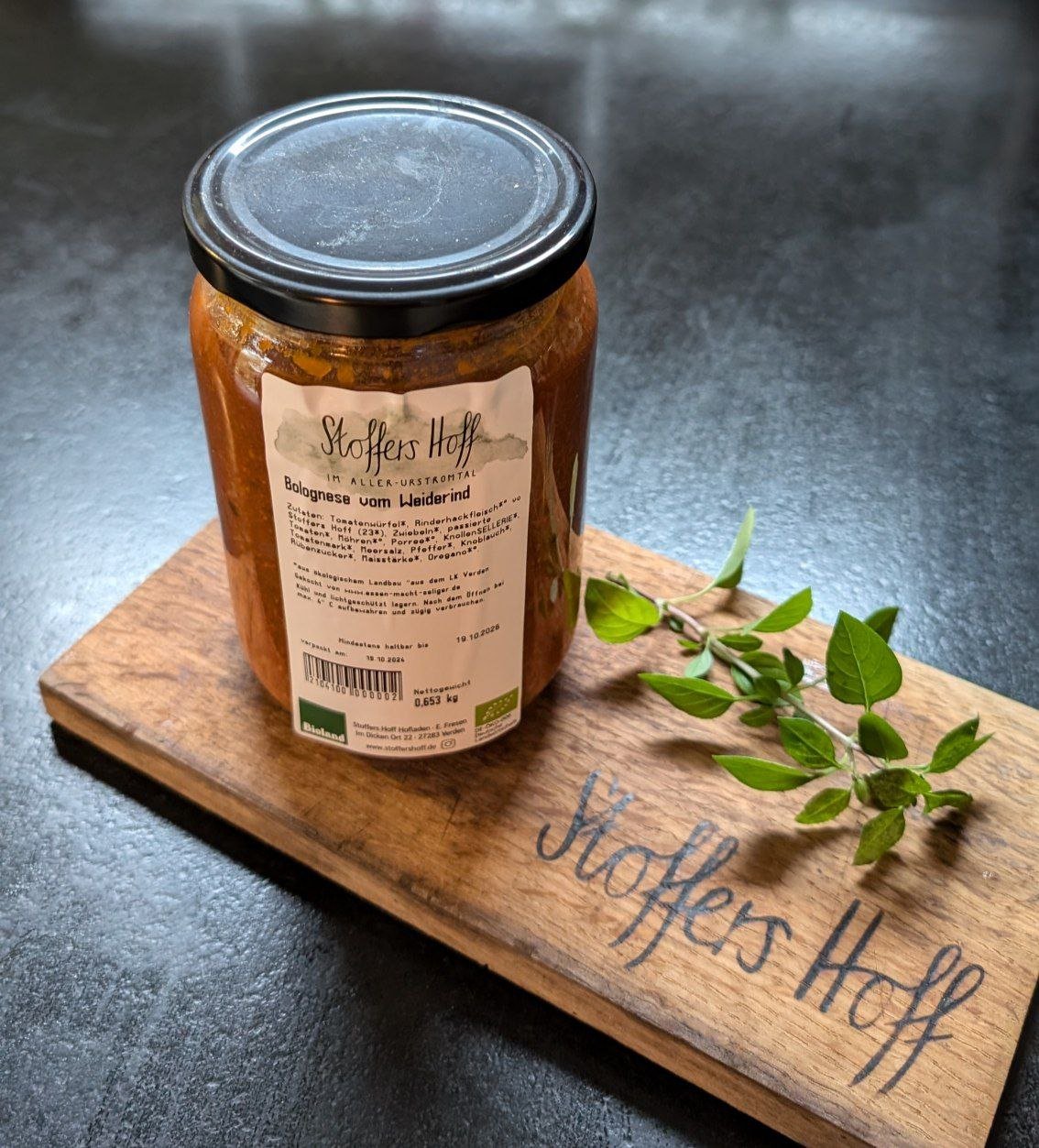 Tomatenwürfel*, Rinderhackfleisch*° (23%), Zwiebeln*, passierte Tomaten*, Möhren*°, Porree*°, KNOLLENSELLERIE*, Tomatenmark*, Meersalz, Pfeffer*, Knoblauch*, Rübenzucker*, Maisstärke*, Oregano*