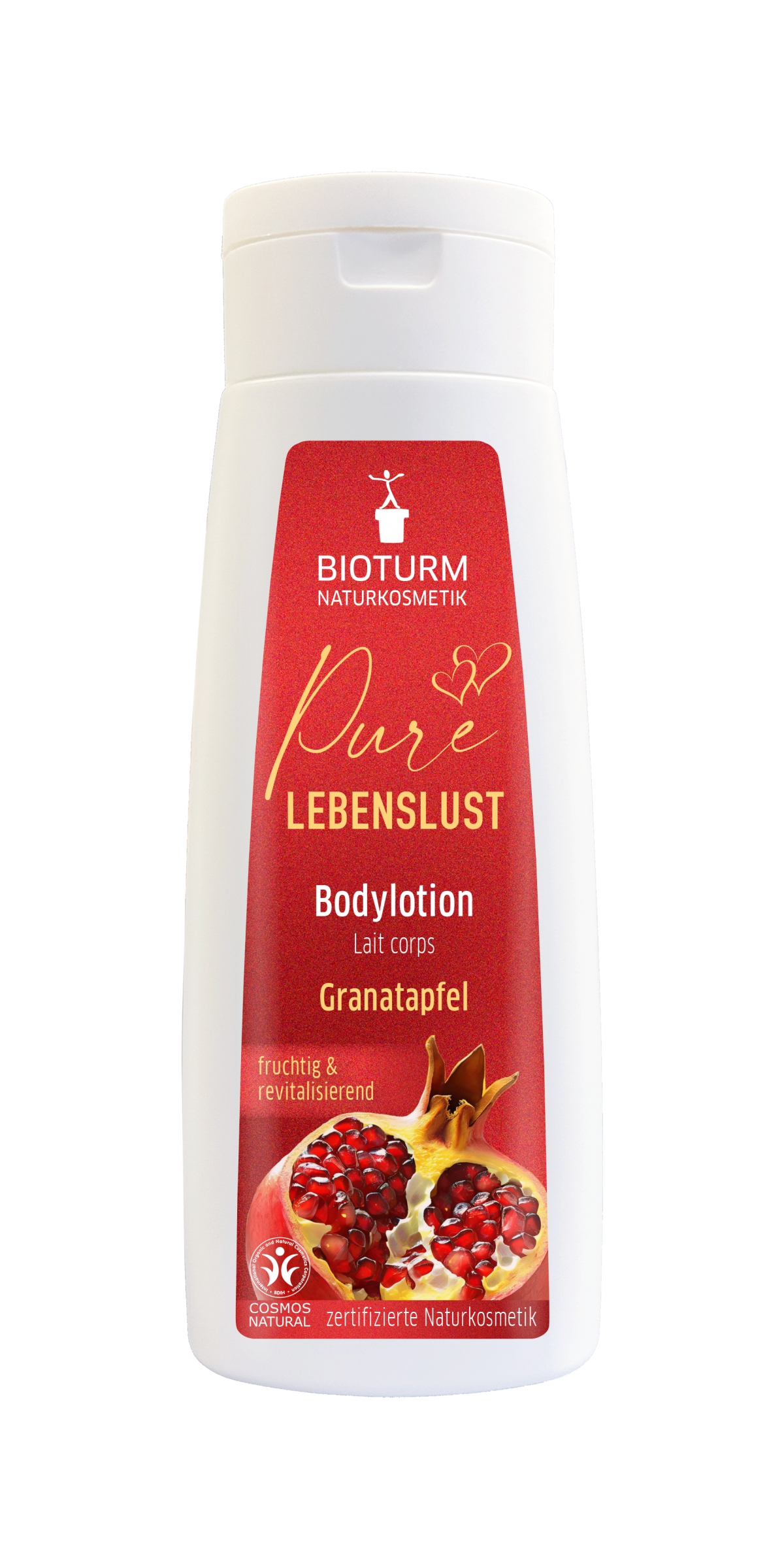 Wasser, Fettsäureester auf pflanzl. Basis, Trinkalkohol, Glycerin, Sonnenblumenöl*, höherer Fettalkohol, Sheanutter*, Jojobaöl*, Betain, Granatapfel-Extrakt*, Sonnenblumenöl, Vitamin E, pflanzl. Zitronen-Fettsäureester, pflanzl. Fettsäureester, Aminosäureester, Polyglycerinester, Fettsäureester auf Zuckerbasis, natürlciher Verdicker, Natriumlävulinat, Milchsäure, pflanzl. Fettsäureester, Natriumanisat, Natriumpolyphosphat auf mineral. Basis, Mischung nat. äth. Öle, Orangenöl, Zitronenöl, Inhaltsstoffe der nat. äth. Öle