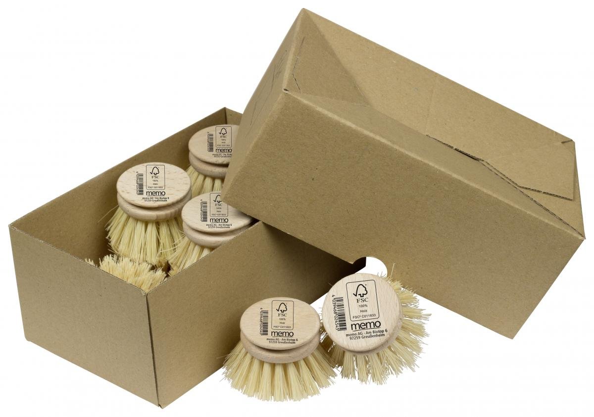 Ersatzköpfe für memo Spülbürsten. Gefertigt aus FSC-zertifiziertem Buchenholz und Borsten aus natürlicher Agavenfaser.