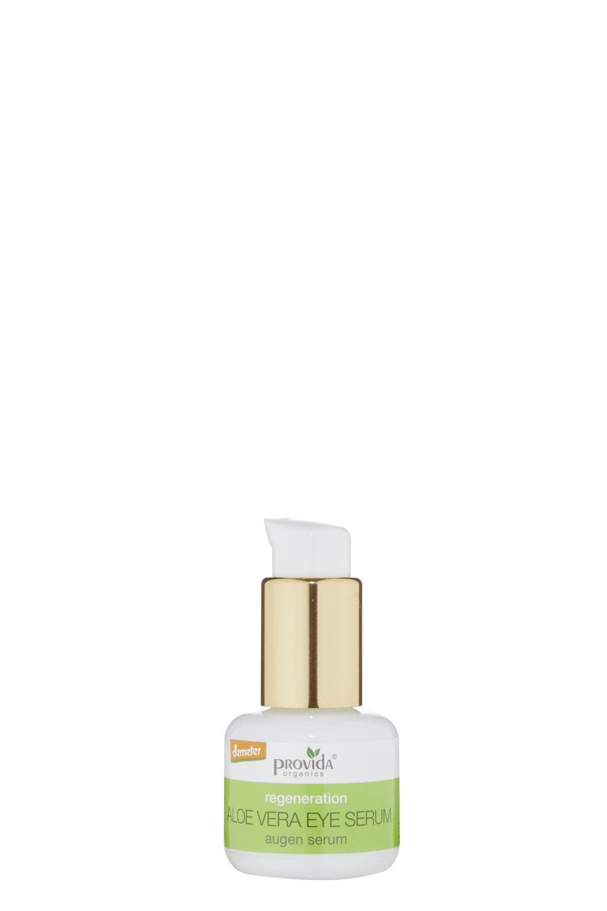 Das Demeter Aloe Vera Augenserum ist ein wahrer Feuchtigkeitsspender für die empfindliche und trockene Haut um die Augen. Die kühlende Eigenschaft der Aloe Vera reduziert Schwellungen und sorgt für eine entspannte, frische Augenpartie. Weißer Tee in Verbindung mit Aloe Vera, spenden der Haut intensive Feuchtigkeit, die besonders wichtig für die oft trockene Augenpartie ist. Vitamin C und Ebereschenextrakt unterstützen den Aufbau von Kollagen in der Haut und kräftigen die dünne Haut um die Augen, und machen sie glatt und geschmeidig.