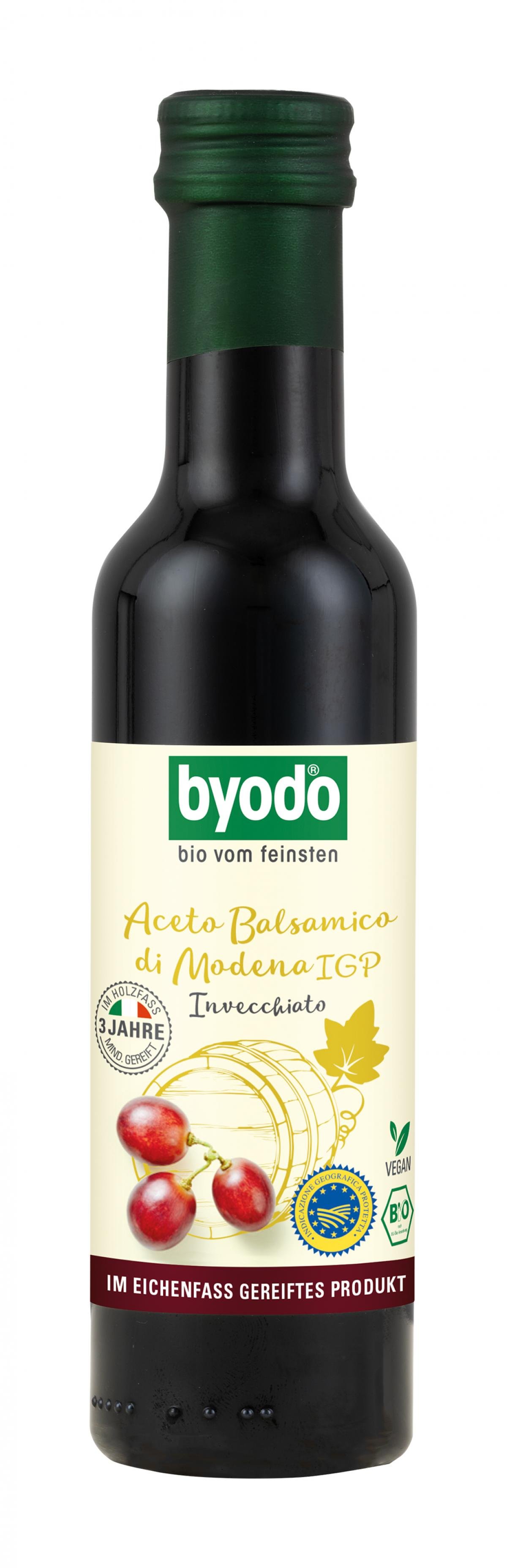 Der Aceto Balsamico di Modena IGP - Invecchiato von Byodo schmeckt dank seiner langen Lagerung besonders komplex und vollmundig. Damit veredelt er feine Salate & z.B. Tomate-Mozzarella, schmeckt aber auch hervorragend zu gebratenem Gemüse und Käse. Beträufeln Sie kleine Parmesanstücke mit etwas Invecchiato und genießen Sie ein köstlich-einfaches Aperitif vom Feinsten!