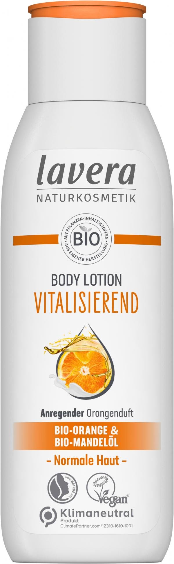 Die Body Lotion Vitalisierend mit Bio-Orange & Bio-Mandelöl für normale Haut.