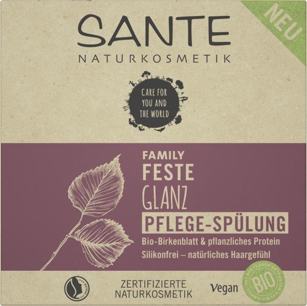 Die SANTE FAMILY Feste Glanz Spülung mit Bio-Birkenblatt für normales und glanzloses Haar spendet Glanz & Geschmeidigkeit. Die natürlich wirksame und milde Pflegeformel stärkt die Haarstruktur verbessert die Kämmbarkeit ohne das Haar zu beschweren. Mit rein natürlichem, zartem Kokosduft. Verträglichkeit dermatologisch getestet. Bio-Birkenblatt: Bekannt für seine pflegende & stärkende Wirkung für glänzendes Haar.