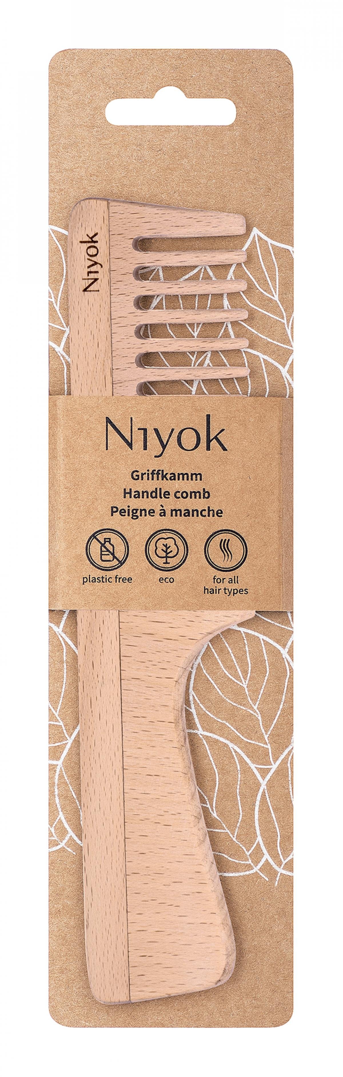 Der plastikfreie Griffkamm von Niyok aus Buchenholz eignet sich hervorragend für alle Haartypen und -längen.