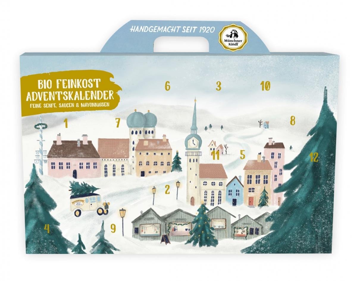 Münchner Kindl Feinkost Adventskalender mit Senfen, Mayonnaisen und Saucen in Bio Qualität