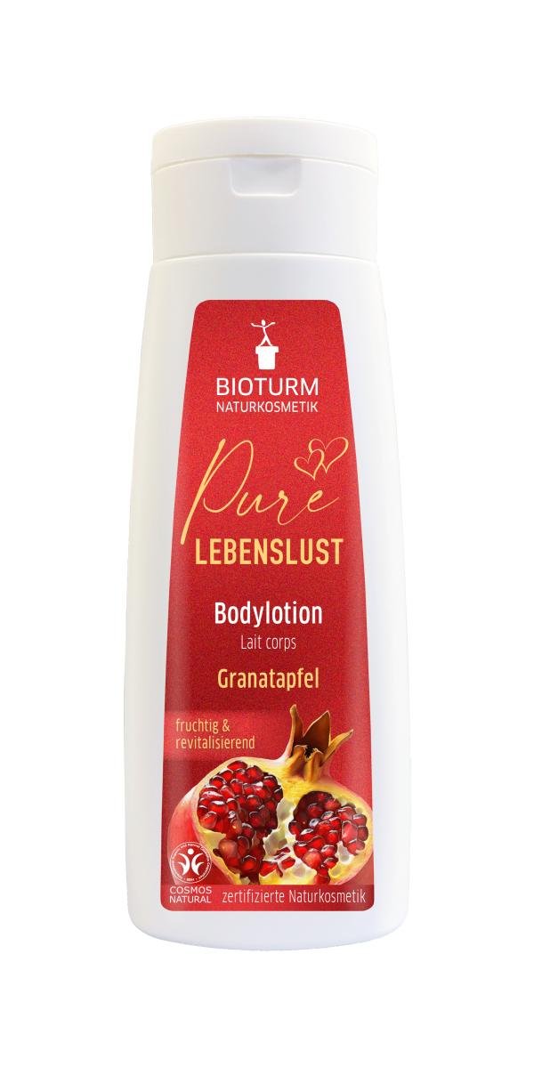 Wasser, Fettsäureester auf pflanzl. Basis, Trinkalkohol, Glycerin, Sonnenblumenöl*, höherer Fettalkohol, Sheanutter*, Jojobaöl*, Betain, Granatapfel-Extrakt*, Sonnenblumenöl, Vitamin E, pflanzl. Zitronen-Fettsäureester, pflanzl. Fettsäureester, Aminosäureester, Polyglycerinester, Fettsäureester auf Zuckerbasis, natürlciher Verdicker, Natriumlävulinat, Milchsäure, pflanzl. Fettsäureester, Natriumanisat, Natriumpolyphosphat auf mineral. Basis, Mischung nat. äth. Öle, Orangenöl, Zitronenöl, Inhaltsstoffe der nat. äth. Öle