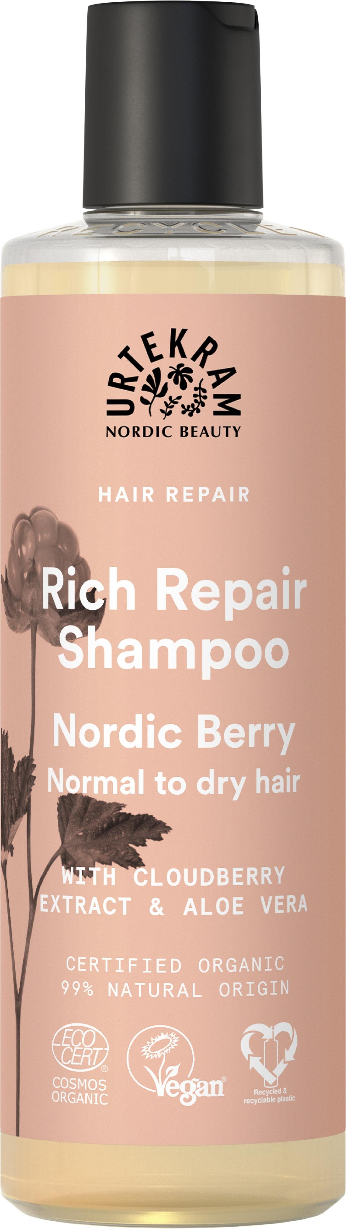 Das reichhaltige Nordic Berry Shampoo repariert und pflegt speziell geschädigtes, dehydriertes Haar vom Ansatz bis in die Spitzen. Vitaminreicher nordischer Moltebeerextrakt revitalisiert und stärkt die Haarstruktur. Konditionierendes PCA Glyceryloleat und feuchtigkeitsspendende Bio-Aloe Vera helfen dem Haar, natürliche Geschmeidigkeit und Glanz wiederzuerlangen. Für kraftvolles Haar mit neuer Widerstandskraft, umhüllt vom fruchtig-frischen Duft nordischer Beeren.