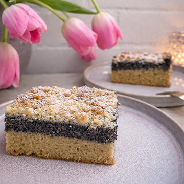 DINKELMEHL Typ 1050*, WEIZNEMHEL Typ 550*, BUTTER*, Zucker*, EIER*, Mohn*, MILCH*, Agavendicksaft*, Maismehl*, Backpulver*, Zimt*, Salz