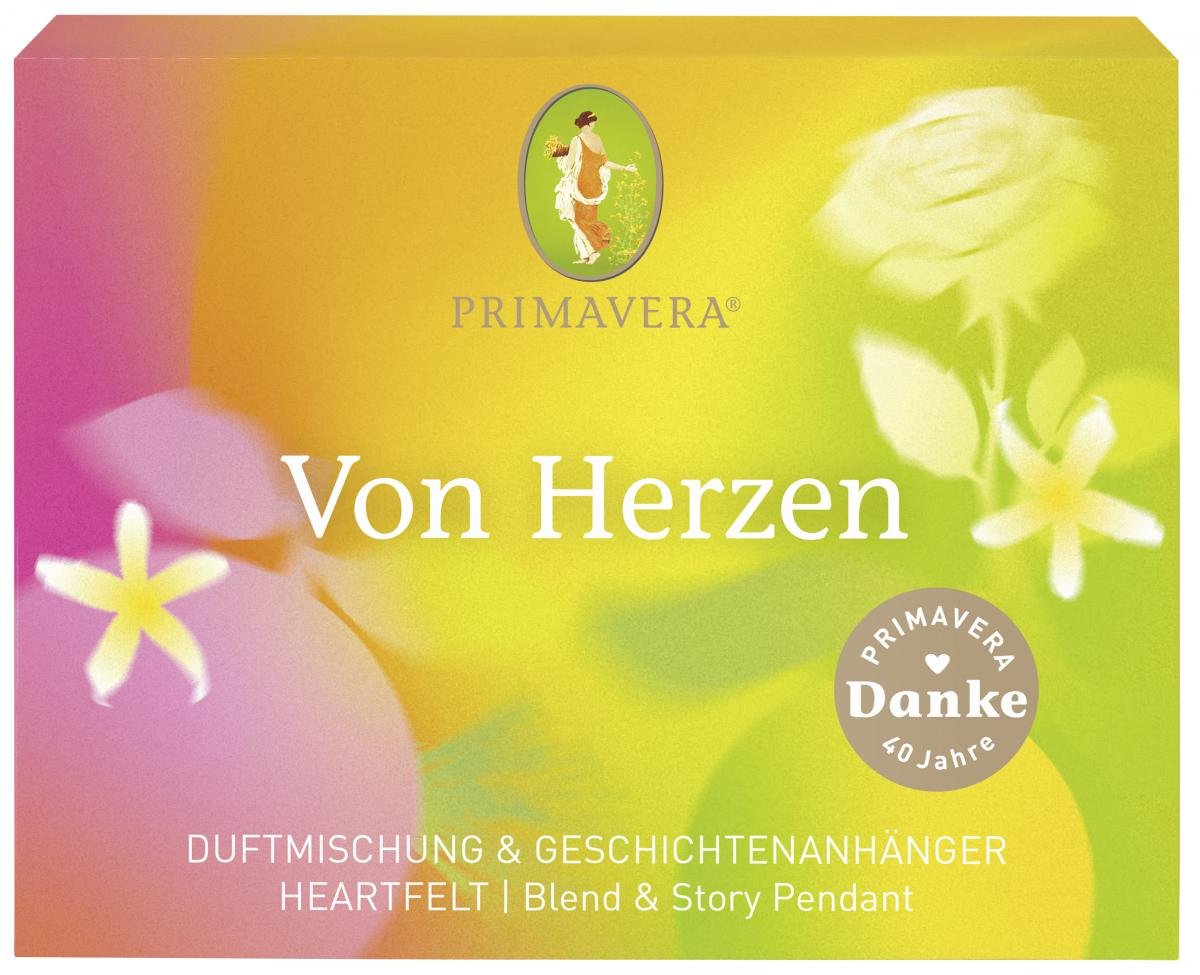 Unser Von Herzen Geschenkset ist Teil unserer Jubiläumskollektion, die wir anlässlich 40 Jahren PRIMAVERA kreiert haben – als liebevolles Dankeschön an alle, die diesen Weg mit uns gegangen sind. Diese Kollektion lädt dazu ein, gemeinsam innezuhalten und die Verbundenheit zu feiern, die unser Wirken seit vier Jahrzehnten prägt. Der Duft erinnert daran, wie wertvoll echte Begegnungen sind und wie sehr uns Gemeinschaft stärkt und inspiriert. Mit seinem facettenreichen, geheimnisvollen Charakter öffnet er Räume für Vertrauen, Miteinander und neue Perspektiven. So wird jedes Sprühen zu einem Moment des Ankommens – ein stiller Gruß von Herzen, getragen von der Kraft der Natur.