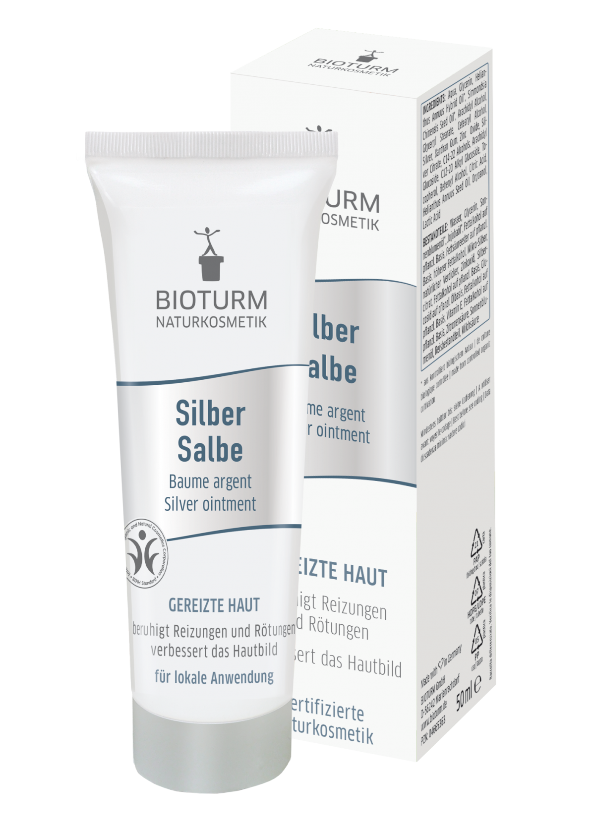 Das von uns eingesetzte Mikro-Silber kombinieren wir mit dem bewährten Wirkstoff Zink und haben so mit der Silber-Salbe ein Produkt geschaffen, das angegriffene, rissige oder juckende Haut pflegt und beruhigt. Reine Pflanzenöle versorgen die Haut zusätzlich mit hochwertigen Lipiden und Feuchtigkeit. Reizungen lassen nach, die Haut beruhigt sich.