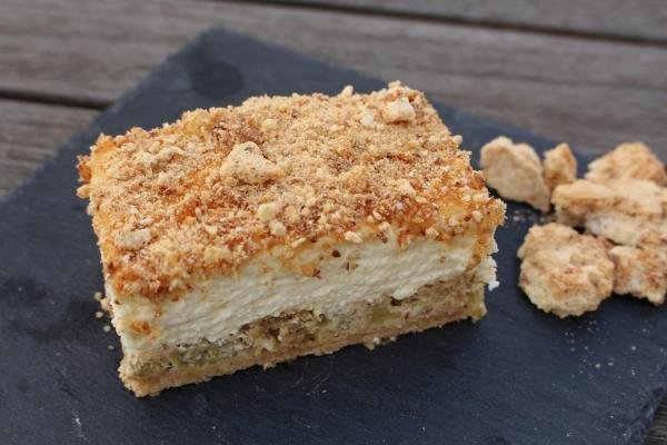 Stachelbeeren*, SAHNE*, Rohrohrzucker*, DINKELMEHL TYP 812* ², EIER*, DINKELVOLLKORNMEHL* ², Backmargarine* (Palmöl*, Kokosöl*, Wasser, Sonnenblumenöl*, Zitronensaft*, Meerspeisesalz), BUTTER*, MILCH*, MANDELN*, CREME FRAICHE*, CASHEW*, Gelatine*, Maisstärke*, Weinsteinbackpulver (Säuerungsmittel [Monokaliumtartrat], Backtriebmittel [Natriumhydrogencarbonat], Maisstärke*), Meersalz, Vanille*. ²= (UR-WEIZEN)