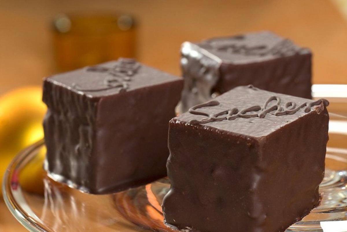 Zartbitterkuvertüre* (Kakaomasse*, Rohrohrzucker*, Kakaobutter*, Vanillepulver*. [Kakaoanteil mind. 57%]), EIER*, Rohrohrzucker*, NUSSNOUGAT* (Rohrohrzucker*, HASELNÜSSE*, Kakaomasse*, Kakaobutter*), BUTTER*, Sauerkirsch-Konfitüre* (Rohrohrzucker*, Sauerkirschen*, Geliermittel: Pektin, Säuerungsmittel: Citronensäure.), HONIGMARZIPAN* (MANDELN* (52% absolut), Bienenhonig*, Wasser), DINKELVOLLKORNMEHL* ², MANDELN*. ²= (UR-WEIZEN)