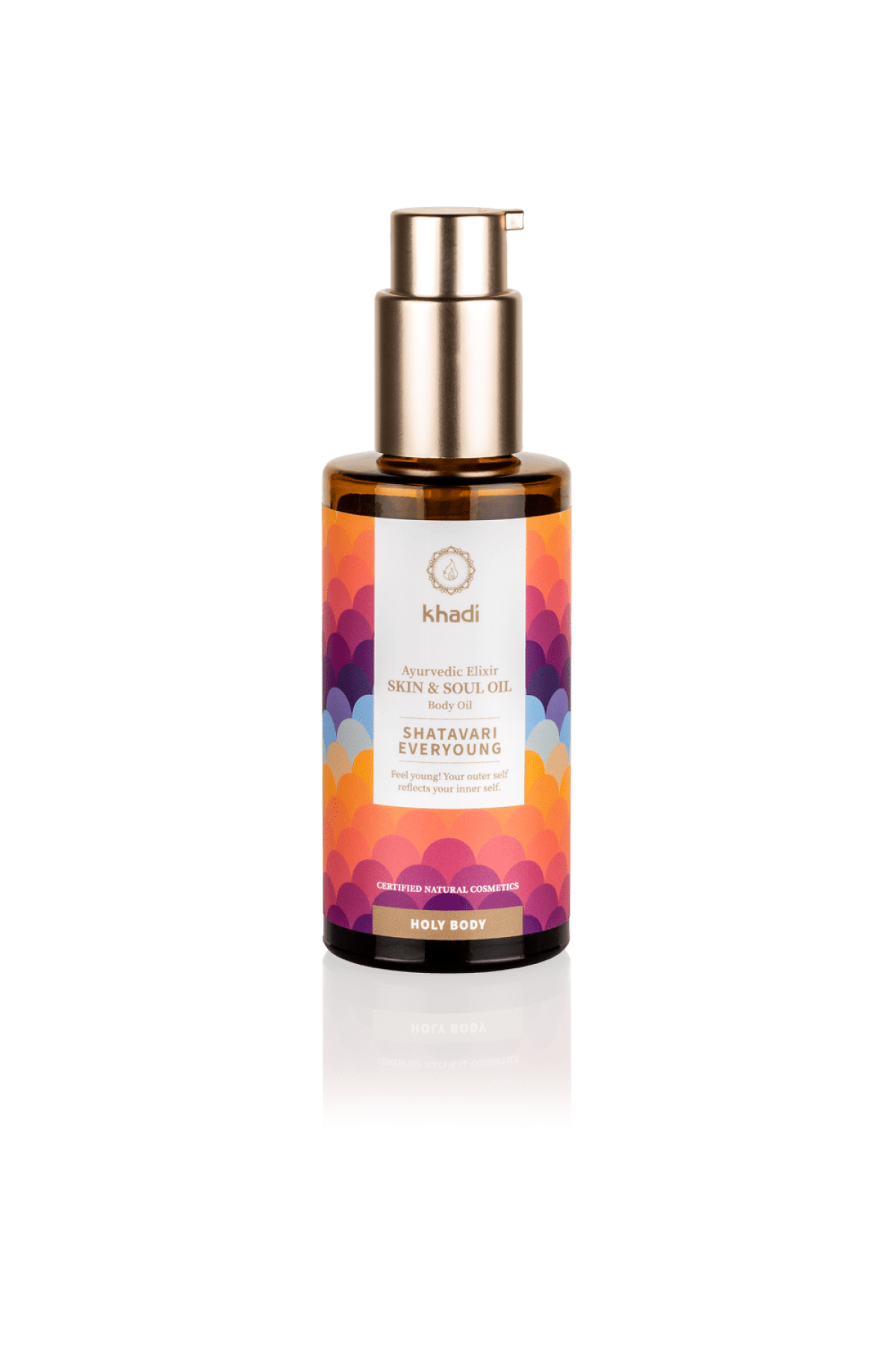 khadi Shatavari Everyoung Elixier Körperöl: Ewige Jugend für Deine Haut - von innen nach außen. Verjüngung wird im Ayurveda mit dem Begriff Rasayana beschrieben. Rasa bedeutet nährende Essenz und Ayana ist der Weg durch verschiedene Kanäle. Jugendlichkeit, bzw. das Verlangsamen des Alterungsprozesses beginnt im Ayurveda tief in den Zellen. Der Ayurveda gilt als erste Anti-Aging-Medizin der Menschheit. Von diesem uralten Wissen profitiert auch dieses intensive Anti-Aging-Öl.