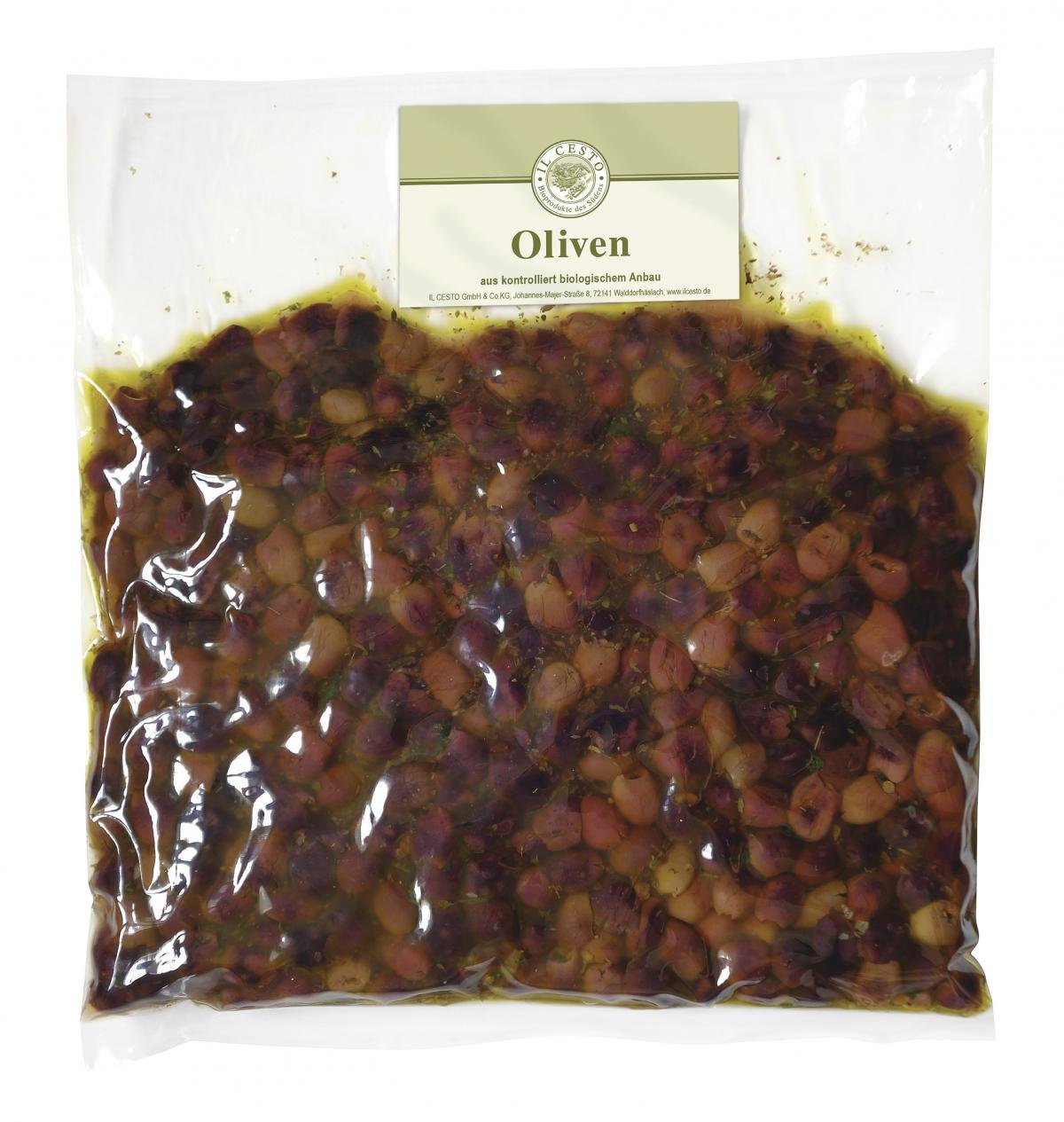 Leccino-Oliven* 87% (Meersalz), Rapsöl* 12%, Knoblauch*, Petersilie*, Oregano*