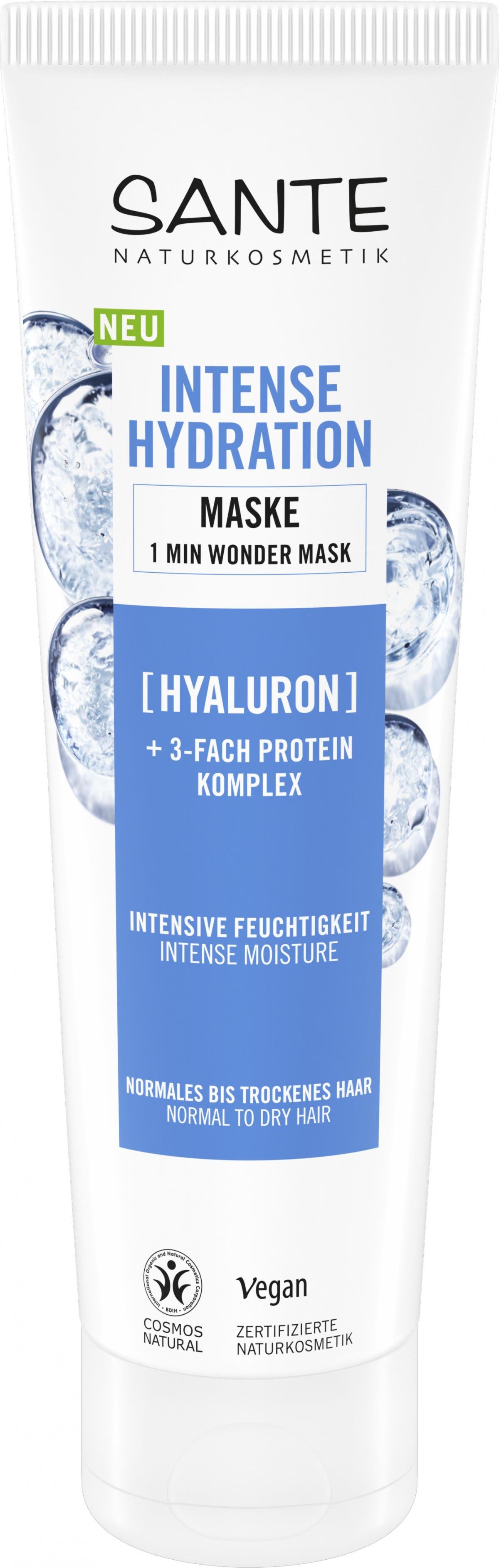 Die Intense Hydration 1 Min Wonder Maske besteht aus einer hochwirksamen Tiefenpflege¹ für trockenes Haar mit Hyaluron und 3-Fach Protein Komplex. Es versorgt das Haar mit intensiver Feuchtigkeit bis in die Spitzen und schützt langanhaltend vor dem Austrocknen, ohne zu beschweren. Der 3-Fach Protein Komplex stärkt, pflegt & schützt das Haar von der Wurzel bis in die Spitzen. Der hydratisierende Pflege-Komplex füllt & baut das Haar auf, für eine natürlich kraftvolle Haarstruktur. Die Verträglichkeit ist dermatologisch getestet. ¹Instrumenteller Test – Shampoo + Maske