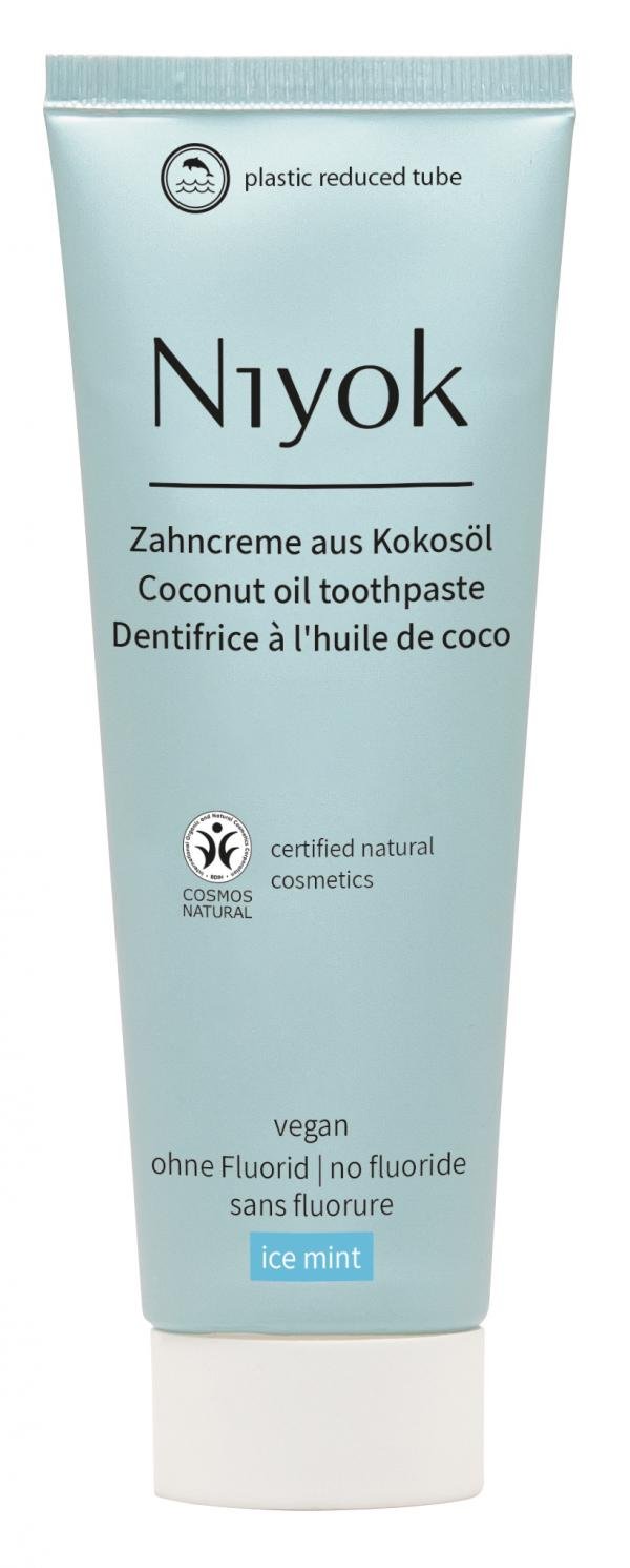 Die natu¨rliche Zahncreme aus Kokosöl von Niyok schu¨tzt Zähne und Zahnfleisch. Hochkonzentriertes Bio-Kokosöl beugt Entzu¨ndungen vor und wirkt anti-bakteriell. Milde Putzkörper aus Calciumcarbonat reinigen die Zahnoberflächen gru¨ndlich und wirken remineralisierend (ohne Fluorid). Xylit komplettiert den Wirkstoffkomplex, indem es Kariesbakterien an der Reproduktion hindert. Verpackt in einer plastikreduzierten Kreide-Tube.